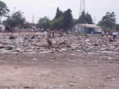 クリーンアップ作戦で家々や店舗が壊され